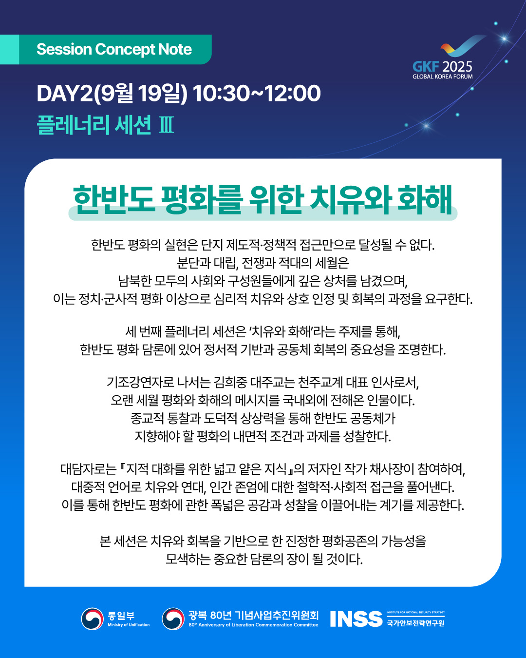 「2025 국제 한반도 포럼」 GLOBAL KOREA FORUM 2025 프로그램 및 주요연사 소개 - 플레너리 세션 Ⅲ (KOR)